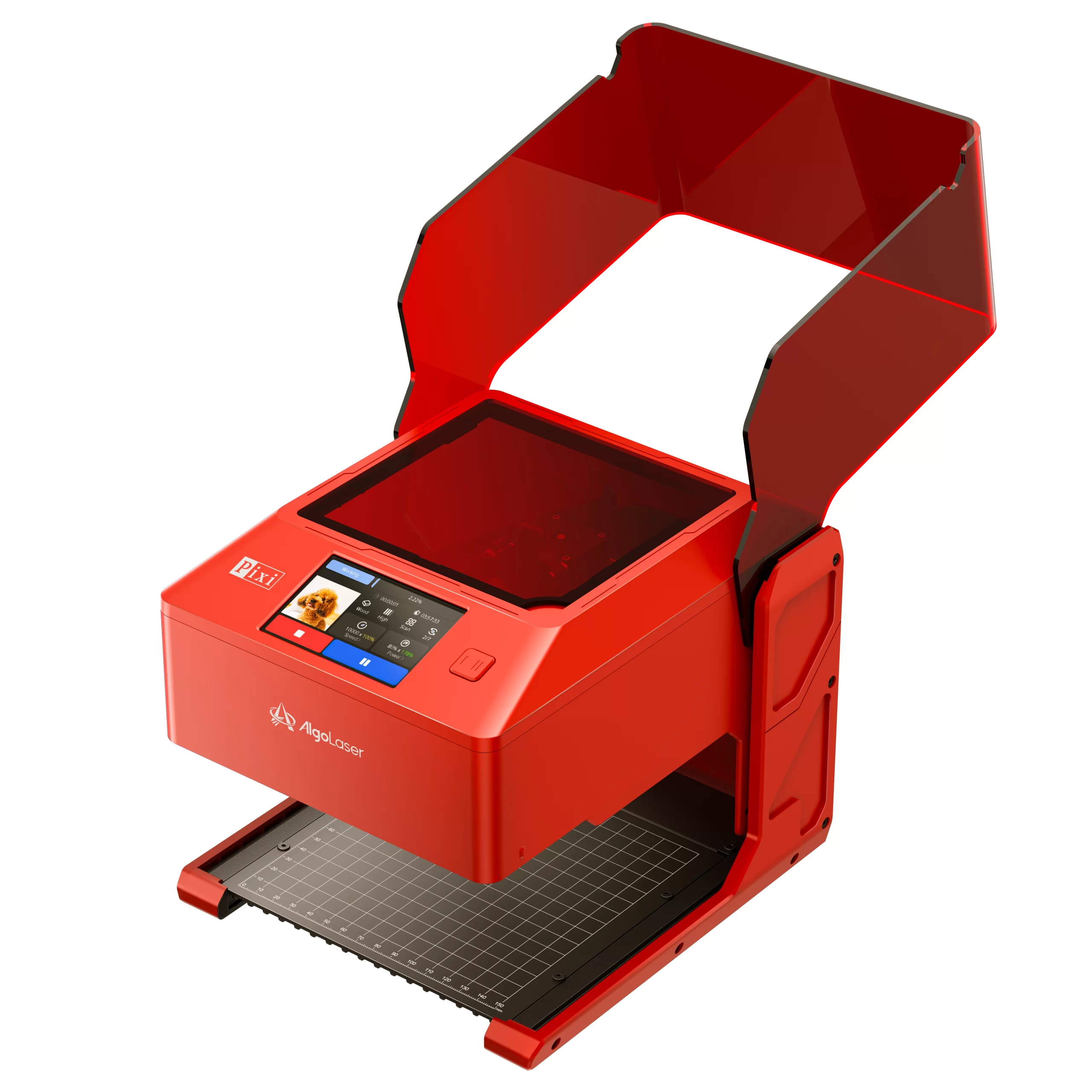La AlgoLaser Pixi 10 W es un grabador y cortador láser totalmente cerrado que funciona sin PC gracias a AlgoOS 2.4. Con área de 100×100 mm, velocidad de 6 000 mm/min y punto de 0,08×0,12 mm, ofrece precisión profesional y seguridad de clase 1. Su pantalla táctil integrada, biblioteca de materiales y funciones como Algosketch (corta tus bocetos) y Algotipo (corta texto), permiten crear y cortar sin complicaciones.